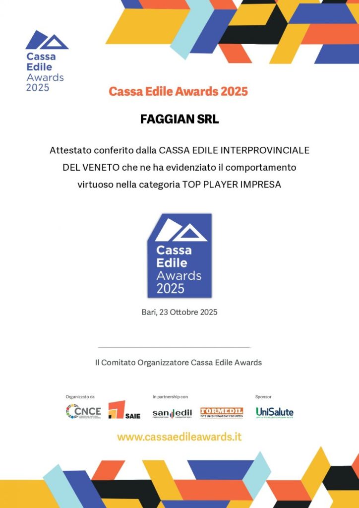 #CassaEdileAwards2025: siamo orgogliosi di condividere con voi questo importante riconoscimento, assegnatoci dalla Cassa Edile come impresa top player.